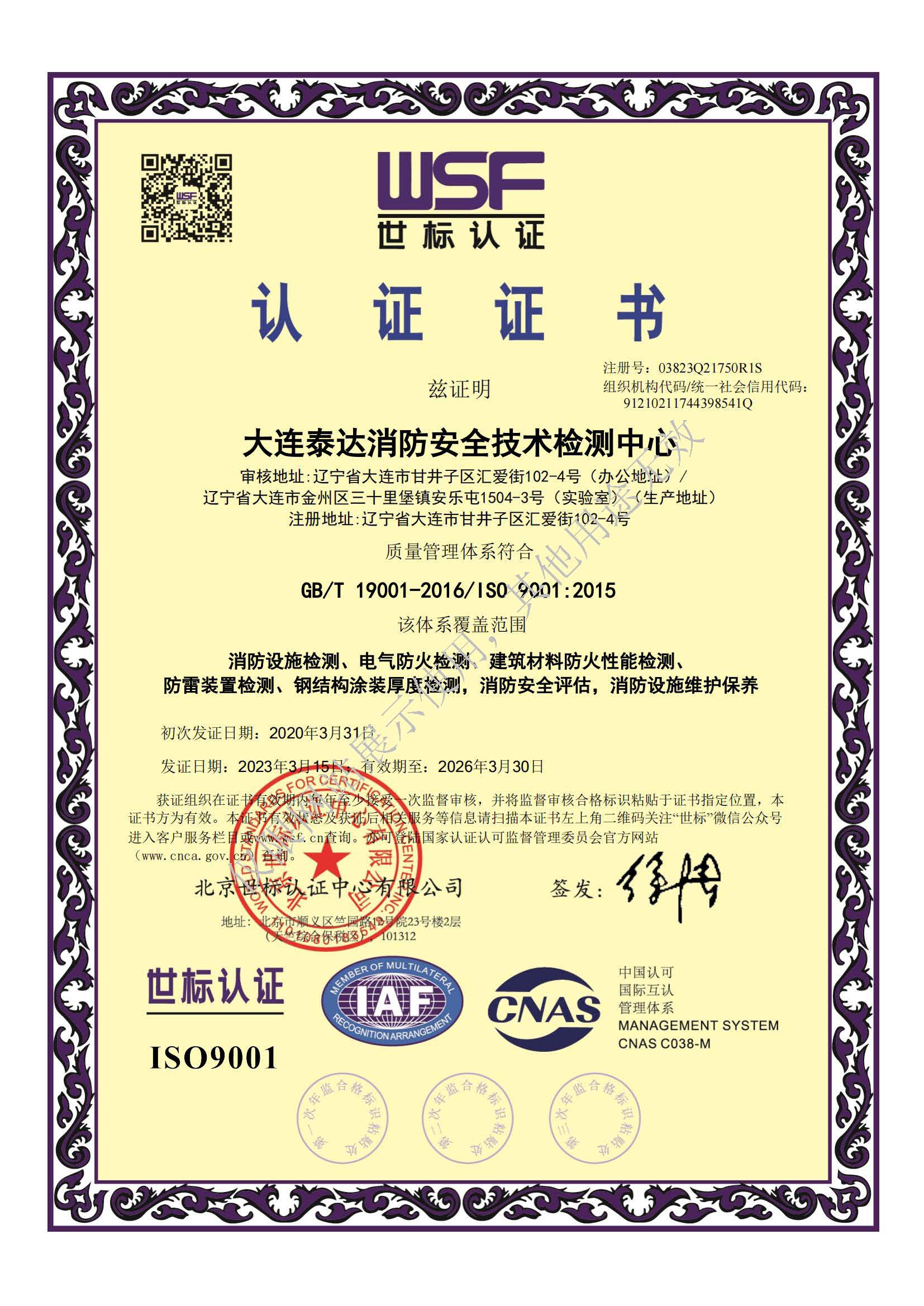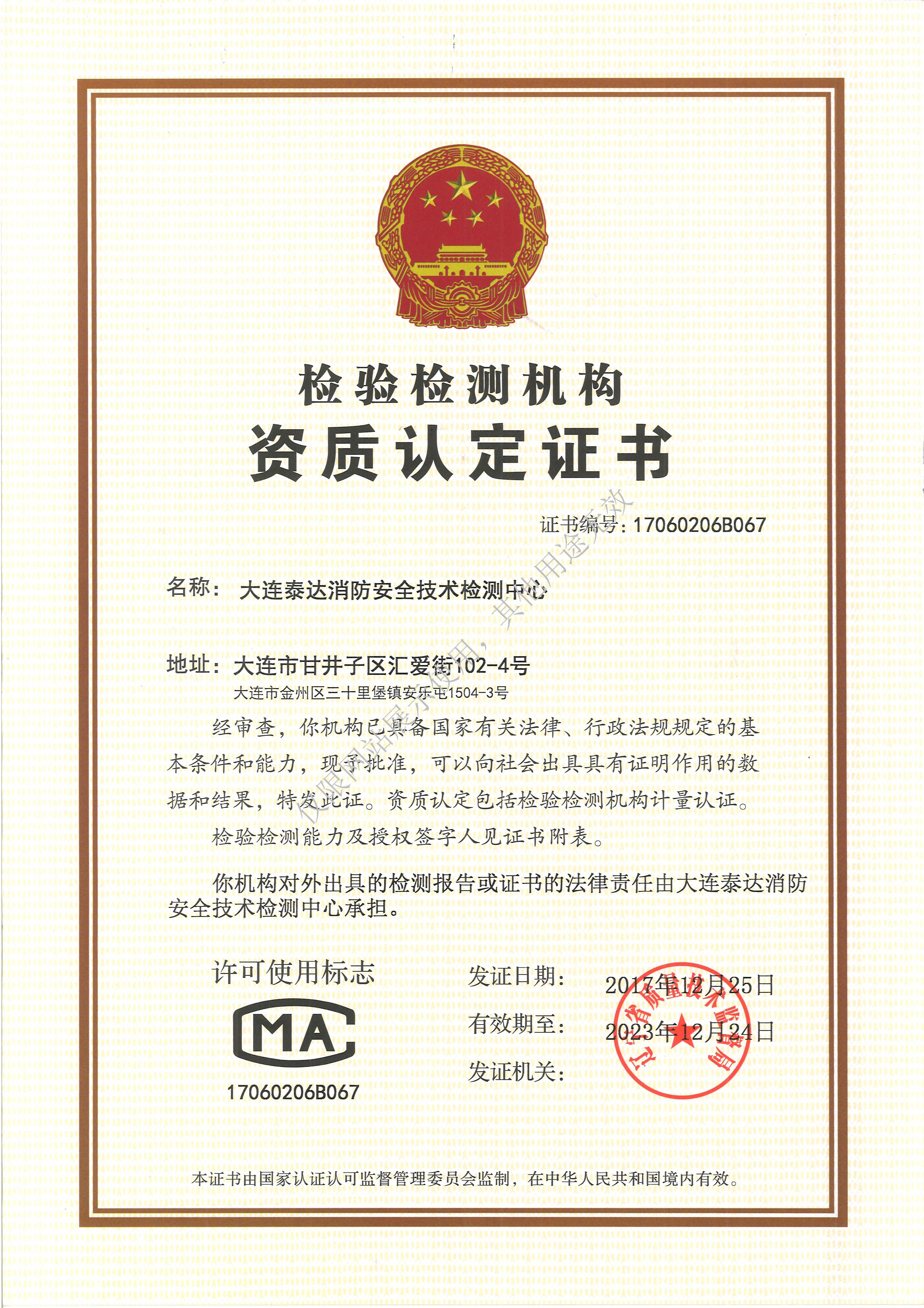 大連泰達消防安全技術(shù)檢測中心
